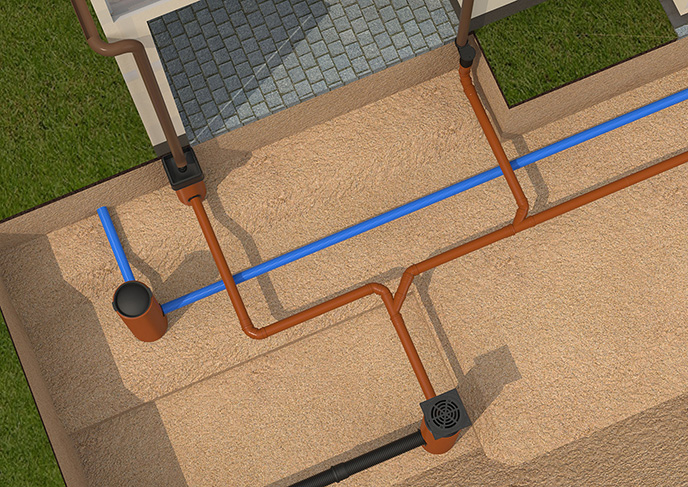 Separate rain and foundation drainage system for a private house